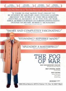 Oscar 2004 come migliore documentario, scelto per la conservazione dalla Biblioteca del Congresso USA, presentato fuori concorso a Cannes 2003, The fog of war è il distillato di circa trenta ore di interviste ridotte a undici lezioni sulla guerra, corredate da immagini, filmati di archivio e registrazioni audio nelle quali McNamara ripercorre le fasi cruciali della crisi dei missili cubani nel1962, dei bombardamenti su Tokyo durante la seconda guerra mondiale e, ovviamente, della guerra in Vietnam, di cui è stato uno dei principali sostenitori e “architetti”. Ma, va detto subito, The fog of war va “maneggiato con cura” perché chi è seduto davanti alla macchina da presa e racconta in prima persona uno dei momenti più delicati e complicati della storia degli USA è uno che di quell’establishment faceva parte; dunque, le sue undici “lezioni” di politica, storia e diplomazia vanno prese cum grano salis e ben ponderate a debita distanza critica, soprattutto nei passaggi in cui McNamara, ripreso in primissimo piano, si commuove, prolunga i suoi silenzi e sembra chiedere empatia allo spettatore, come nella sequenza in cui racconta le fasi successive all’attentato di Dallas a JFK, dagli spari nella Dealey Plaza fino alla scelta del punto preciso dove seppellire la salma nel cimitero di Arlington. Per quanto sia cosa nota che nel 1963, prima della morte di Kennedy e del colpo di stato che rovesciò il presidente Diem in Vietnam, McNamara aveva già consigliato l’amministrazione USA di ritirare i 16.000“consiglieri militari” (che eufemismo!) presenti nel paese, non dobbiamo dimenticare che nei cinque anni successivi egli fu l’eminenza grigia di Johnson e, a partire dal cosiddetto “incidente del Tonchino” del ’64, tutte le decisioni più importanti sulla gestione della guerra furono prese da lui, dall’invio di altri 45.000 marines nel 1965 (gli effettivi arriveranno a più di mezzo milione), all’uso dei defolianti (il micidiale agent orange) che causarono migliaia di morti anche decenni dopo la fine della guerra, fino alla scelta strategica denominata “Rolling Thunder”, cioè la campagna di bombardamenti sul Vietnam del Nord allo scopo di fare cessare l’aiuto militare ai guerriglieri Vietcong.