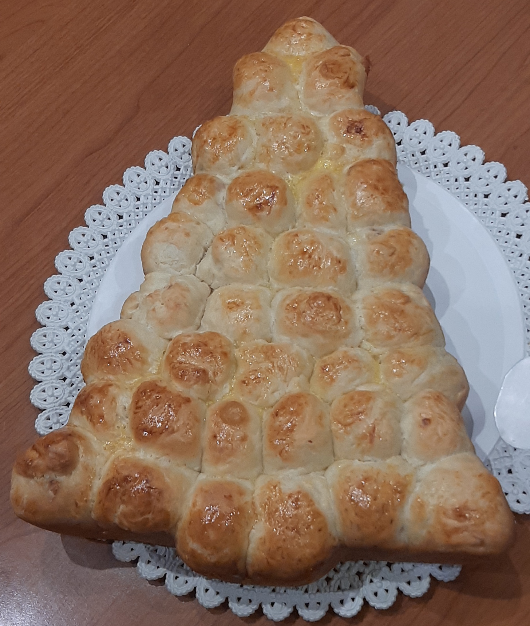 Ecco qui il danubio impiattato e pronto per essere servito. Io ho scelto di utilizzare uno stampo a forma di albero di Natale per renderlo più carino da presentare,ma voi potete utilizzare la forma che preferite. In mancanza di altro,va benissimo anche una classica tortiera circolare:ciò che conta alla fine,è sempre il gusto!
