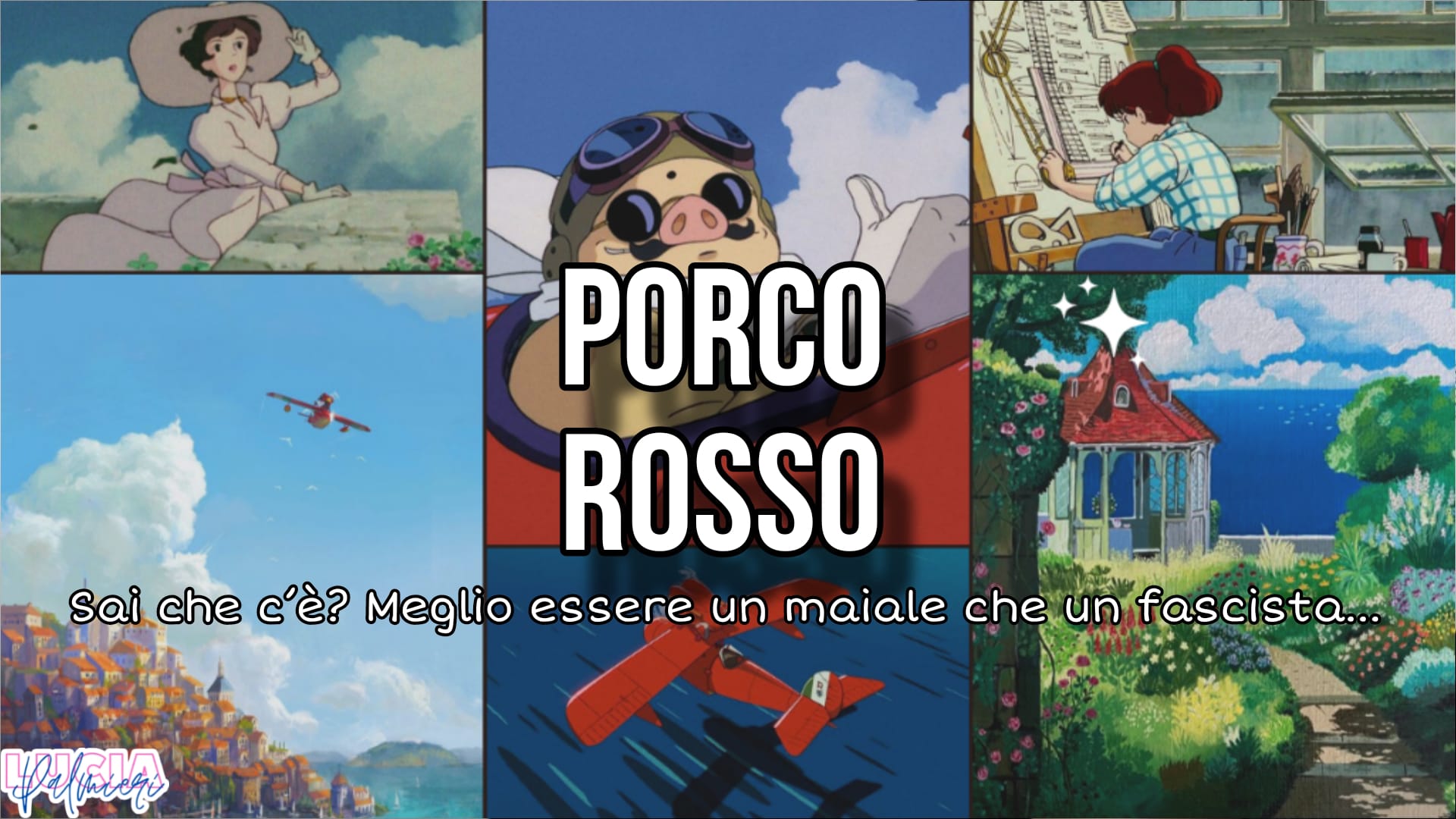 Porco Rosso, ovvero Volo, Amore, τέχνη: tra i vertici di questo triangolo si consuma, alla fine degli anni ’20 del secolo scorso, la vicenda di Marco Pagot, aviatore italiano che, durante la Grande Guerra, resta sfigurato dopo una missione con i propri compagni di volo: il suo volto assume le fattezze di un maiale e, da quel momento in poi, Marco diventa Porco Rosso, dal colore del Savoia S.21, l’idrovolante con cui dà la caccia ai pirati che infestano i cieli e i mari dell’Adriatico. Non sappiamo nulla del sortilegio che lo ha trasformato, intuiamo solo che Marco ha avuto una sorta di esperienza di pre-morte durante il volo in cui ha perso tutti i compagni; e, da allora, ha lasciato l’aviazione militare e si è ritirato in autoesilio in un’isoletta della Dalmazia, lontano dagli uomini e dall’amore di Gina, la bellissima donna che ancora lo ama e di cui tutti i piloti di idrovolanti dell’Adriatico sono innamorati. Per fare i conti una volta per tutte con la banda di pirati dell’aria dei Mamma Aiuto, Marco-Porco dovrà affrontare in un duello aereo Donald Curtis, asso dell’aviazione americana con velleità hollywoodiane assoldato dai “cattivi” (che poi tanto cattivi non sono, anzi…) e per questo ha bisogno di rimettere a nuovo il proprio velivolo affidandolo alle mani capaci di Fio Piccolo, una geniale ragazzina di Milano che si rivelerà un’autentica maestra nella progettazione dell’aereo nonché un’amica fidata e complice del solitario eroe dei cieli.