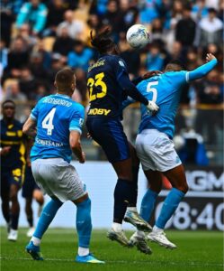 I ducali si chiudono a catenaccio davanti alla porta di Suzuki e con lucidità impediscono ai giocatori di Conte di trovare il raddoppio. Al 74’ su calcio d’angolo McTominay prova a ricreare nuovamente il suo celebre goal in rovesciata, ma la conclusione è alla portata del portiere emiliano. All’80’ gli azzurri rischiano sull’unica ripartenza del Parma: Mandela Keita tira di destro al limite dell’area e Milinković-Savić devia in calcio d’angolo. Al 38’ della ripresa il subentrato Gutiérrez mette un cross perfetto sulla testa di Elmas, che spreca colpendo più di spalla che di testa. L’ultima vera occasione del Napoli arriva nel recupero con Alisson Santos: il brasiliano frusta di mancina e sollecita i riflessi di Suzuki. Il secondi scorrono implacabili sul cronometro e al triplice fischio dell’arbitro gli azzurri si arrendono al blocco difensivo granitico del Parma, sprecando la possibilità di mettere pressione all’Inter. È un pareggio che lascia l’amaro in bocca, che si aggiunge alla lista dei rimpianti e che sa di sconfitta e di resa definitiva. A maggior ragione dopo la vittoria dei nerazzurri contro il Como, che lotta ma cede sotto i colpi di Marcus Thuram e Denzel Dumfries, i sogni degli azzurri sfumano in meno di un minuto.