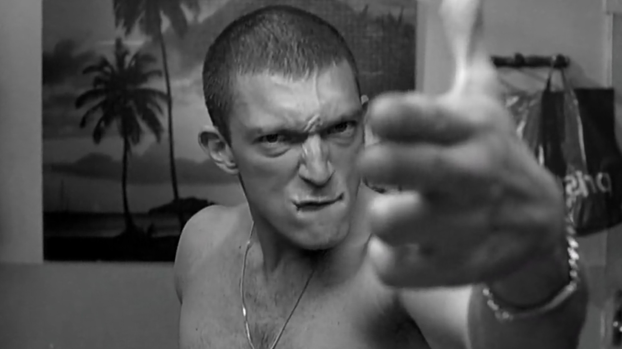 Soffermiamoci su una parola: conflitto. I nostri tre lo vivono in continuazione, quotidianamente, se ci fate caso, non appena si confrontano con il mondo esterno: nel tentativo di essere intervistati, nei rapporti con la polizia, nella galleria d’arte, e persino fra sé stessi. Un senso di conflitto perfettamente interiorizzato e che modella le loro vite di conseguenza, che scorgiamo perfettamente nelle inquadrature, che di volta in volta assumono il punto di vista di chi è attivo e quindi mostrano la realtà profonda dietro i personaggi. Proprio il gioco delle inquadrature è fondamentale per definire il rapporto che condiziona i tre protagonisti, nella centrale scena del bagno: da un lato Vinz esprime tutto il proprio odio nei confronti del sistema, dichiarando apertamente di voler vendicare Abdel, credendo che si debba combattere per non accettare passivamente l’imposizione dello squilibrato sistema; Hubert, invece, è più limitato (negli scontri del giorno prima non ha partecipato ma solo subito danni), ma non meno riflessivo, come vediamo in più di un’occasione, e vuole far ragionare Vinz, non fargli commettere errori gravi, e quindi è il primo a tirarsi fuori da faccende per lui superflue quanto scomode; Said, dunque, posto in mezzo ai due interlocutori o sullo sfondo, è chiaramente in una posizione intermedia, quasi da ago della bilancia di un triumvirato (collegandoci al Liceo Classico), tanto che nel corso del film non ci viene mai mostrata in una scena specifica casa sua e la sua vita privata, tantomeno il suo pensiero nei confronti del suddetto sistema; questo rapporto fa le varie forze è percepibile anche nella scena finale.