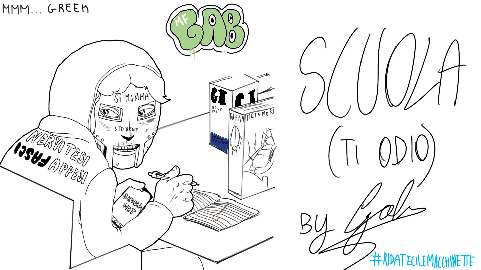 Arte e SpettacoloFumettiPrimo piano Scuola… (ti odio) #RidateciLeMacchinette 0 Commenti Fumetti, Scuola (Ti odio) di Gabriele Conte (IF) mmm...ancient-greek Immagine 1 di 3