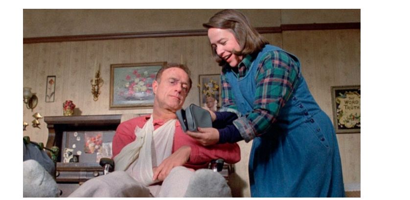In Misery (1987), Paul Sheldon è uno scrittore di successo noto per la serie di romanzi rosa con protagonista Misery Chastain. Dopo aver scritto l’ultimo libro della saga, nel quale decide di uccidere la sua eroina per dedicarsi a opere più ambiziose (Bolidi è il libro che ha già scritto, di cui ha con sé l’unica copia dattiloscritta, l’opera che dovrebbe consacrarlo definitivamente agli occhi della critica come scrittore mainstream), ha un incidente d’auto in una zona isolata del Colorado. Viene salvato da Annie Wilkes, un’ex infermiera psicopatica, un “angelo della morte” che l’ha fatta franca in tribunale nonché sua fan numero uno, che lo accoglie nella sua casa, lontano dal mondo, con l’intenzione di curarlo. Tuttavia, quando scopre che nel nuovo romanzo di Sheldon Misery è morta, Annie si trasforma in una carceriera sadica e violenta e costringe l’immobilizzato Paul a scrivere un nuovo libro in cui l’eroina Misery dovrà essere riportata in vita. Il rapporto malato col proprio pubblico, il dilemma tra letteratura di consumo e produzione “alta”, le difficoltà di creare una trama “onesta” e credibile agli occhi dell’Assiduo Lettore (rappresentato dalla folle ma non ingenua Anne) sono i temi attorno a cui King costruisce uno dei suoi romanzi più famosi, grazie anche alla trasposizione cinematografica di Rob Reiner del 1990. Paul è lo scrittore metaforicamente intrappolato, l’artista in perenne conflitto tra il desiderio di libertà creativa e le aspettative del pubblico che vorrebbe emanciparsi dalla produzione di consumo, mostrare a se stesso e al mondo che è capace di fare di più ma è letteralmente imprigionato dalla sua fama: scoprirà, al termine della terrificante “degenza” nella casa di Anne, che tutto sommato la “celebrità commerciale” non gli dispiace affatto. Annie è, a sua volta, il pubblico nella sua forma più ossessiva e possessiva, il lettore fanaticamente attento agli sviluppi della trama che non accetta il cambiamento e che esige che l’autore resti ancorato a una formula di successo sempre uguale a stessa: Kathy Bathes, che per il ruolo di Anne ha vinto l’Oscar come migliore attrice protagonista, è straordinaria nel restituire allo spettatore una figura di donna perennemente in bilico tra devozione e sadismo, tra materna premurosità e glaciale furia vendicativa. Per tutta la durata del film, nell’arco di una battuta la Bates riesce a cambiare registro vocale e personalità con una performance che l’Academy non poteva ignorare (cosa abbastanza rara per un thriller psicologico con elementi horror).